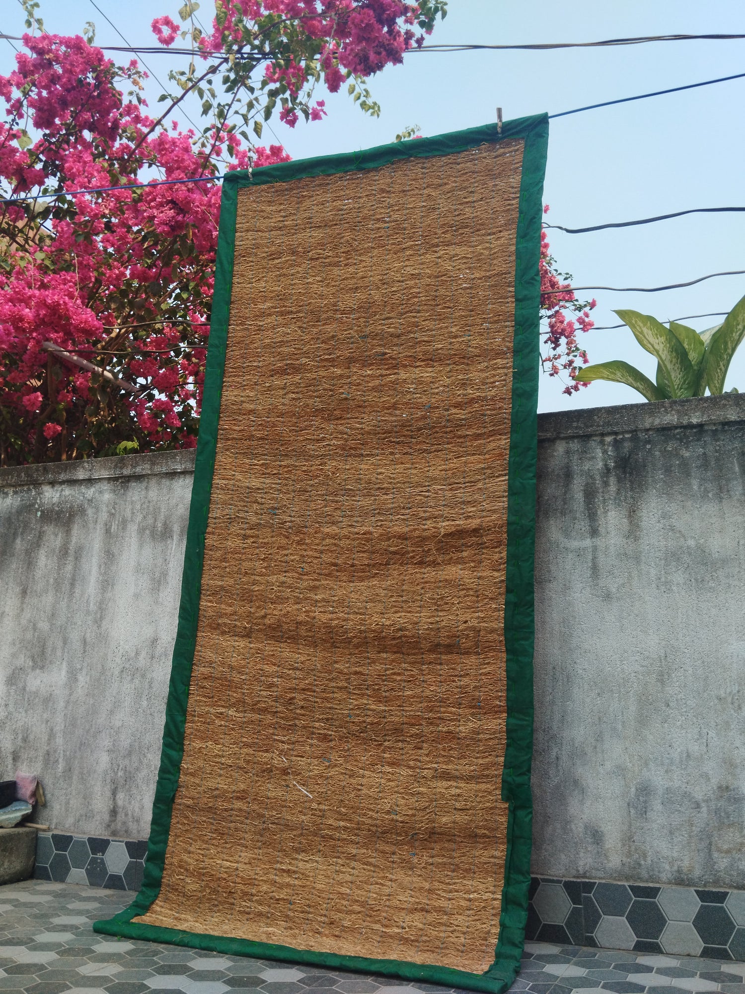 Decorate your home with our newly designed Vetiver Curtains or Khus Mats designed with green cotton border.Great use for door window and balconies creating a relexing pleasant cool and peaceful atmosphere around. Its dark brown colour indicates the high quality of organic roots used which emmits sweet natural woody and balsamic frangance.